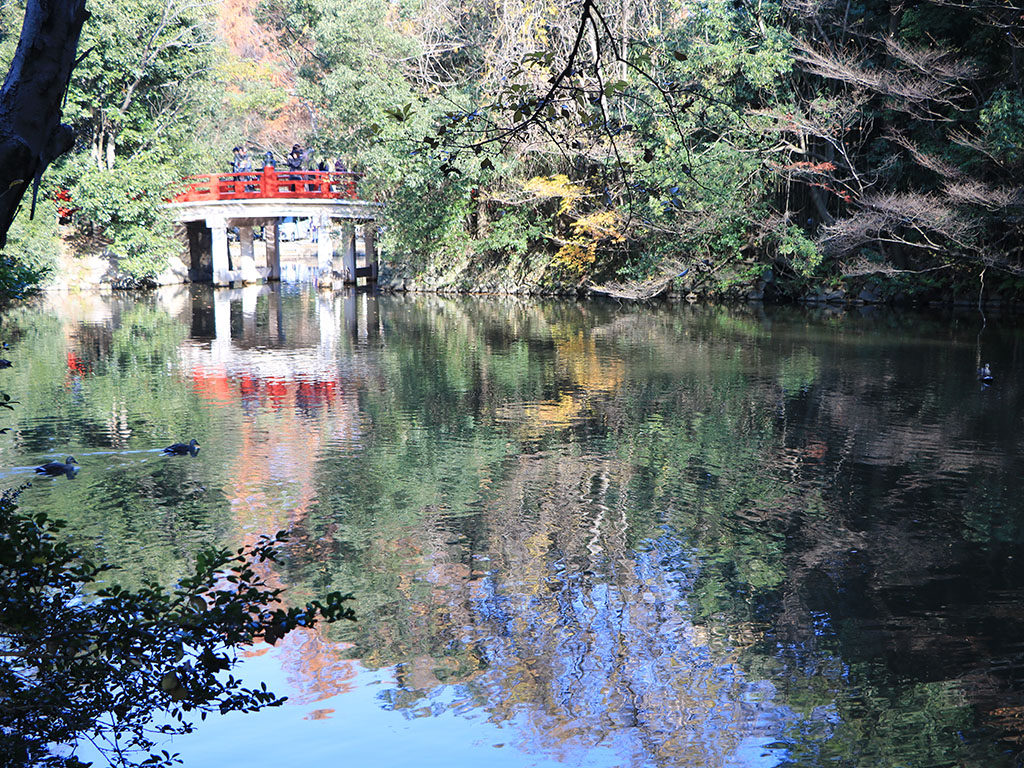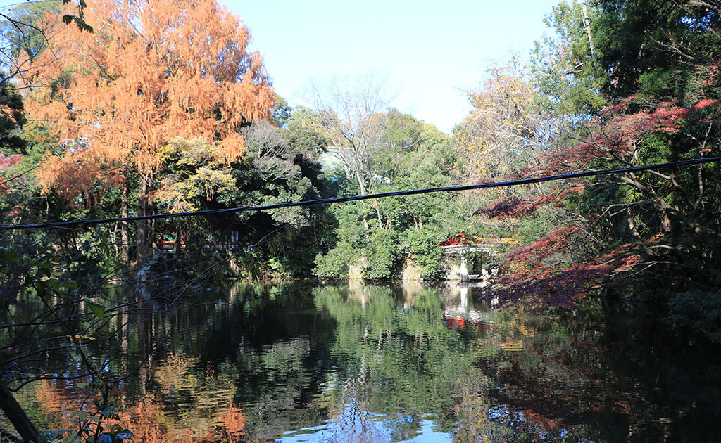 小動物園もある同園は、一年を通じ多くの人が訪れる。広大な敷地に大きな木々が立ち並び、春は桜、秋は紅葉が見られます。この時期、隣接する神社では七五三のお参りの着物姿の親子も多く見られます。